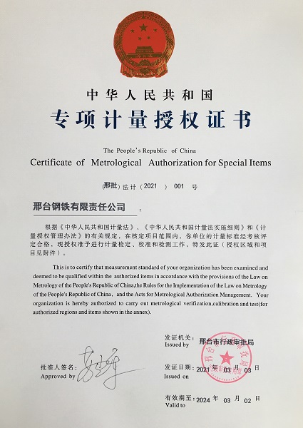 - Recently, four verification items including Digital-Indicating Scale, nonautomatic indication scale, precision pressure gauge and vacuum gauge, ordinary pressure gauge and vacuum gauge got the certificate of metrological authorization for special items. This symbolized Xingtai Steel’s verificatio…