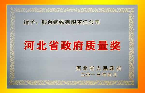 - on 27th May, the Qaulity Promotion Videophone Meeting was held in the Hebei Hall in Shijiazhuang city. In the meeting, Xingtai Steel was Awarded Hebei Government Quality Award 2012, which is the top honor in the quality field of Hebei province.