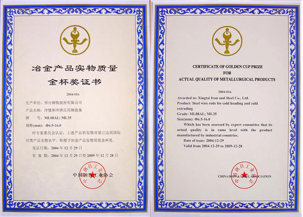 冷鐓和冷擠壓用鋼盤條ML08AL,ML35獲冶金產品實物質量金杯獎
