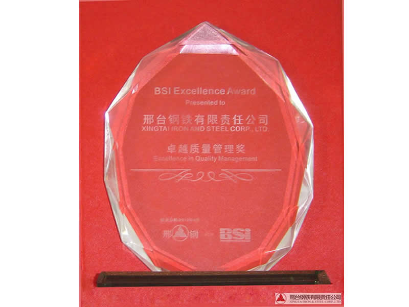 2012年4月25日,BSI公司(中國)在上海舉行了首次“卓越質量管理獎”頒獎儀式,并授予邢臺鋼鐵有限責任公司“卓越質量管理獎”稱號,同時獲獎的還有寶鋼等其他10幾家企業(yè)。