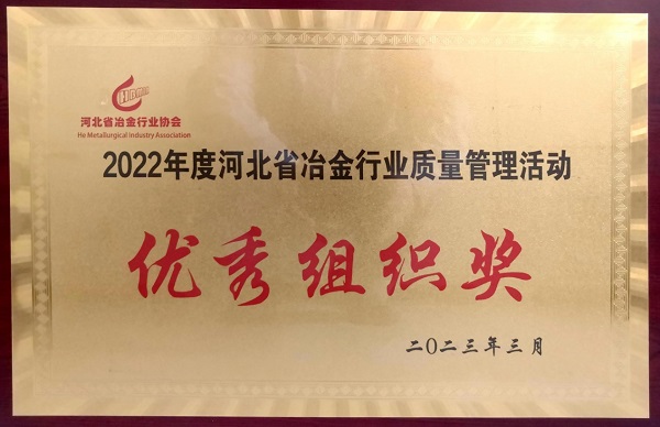 - 邢鋼榮獲“2022年度河北省冶金行業(yè)質(zhì)量管理活動優(yōu)秀組織獎”