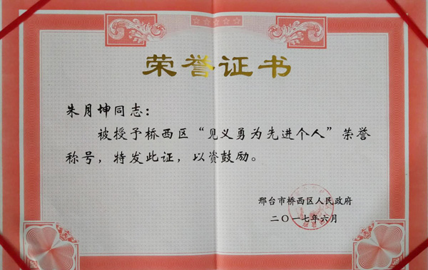 邢鋼質量控制部朱月坤被授予邢臺市優(yōu)秀退役軍人榮譽稱號