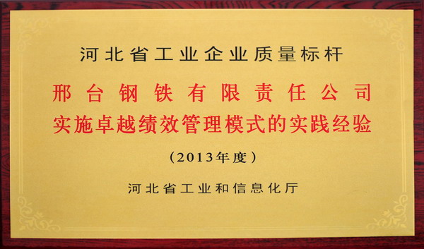 邢鋼實施卓越績效管理模式的實踐經(jīng)驗獲省工業(yè)企業(yè)質(zhì)量標桿