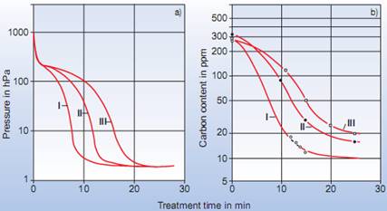 對于初始碳含量大約為0.03%,采用壓降方式Ⅰ在15min內碳含量可以降到12×10-6,而采用壓降方式Ⅲ則只能降低到50×10-6 。