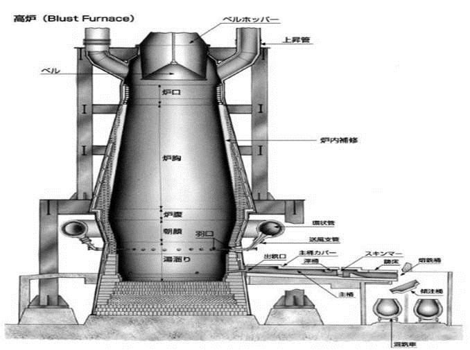 高爐是煉鐵設備,是鋼鐵冶煉的第一道工序,即鐵礦石須經(jīng)高爐冶煉后才能得到各種類用途的生鐵塊,或供煉鋼使用的鐵水。高爐外殼是鋼板,殼內砌耐火磚內襯,爐殼和耐火材料之間有冷卻設備。高爐本體自上而下分為爐喉、爐身、爐腰、爐腹、爐缸5個部分。