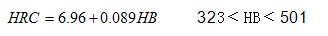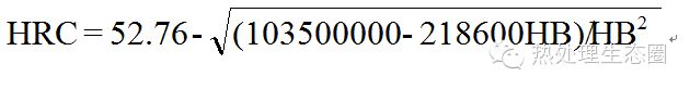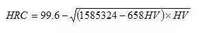 本公式與國家標準實驗換算值對照,換算式計算結果與標準實驗值之誤差為?0.1HRC。