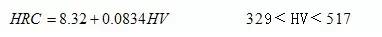 進行修正后得出洛氏硬度與維氏硬度的換算公式為: