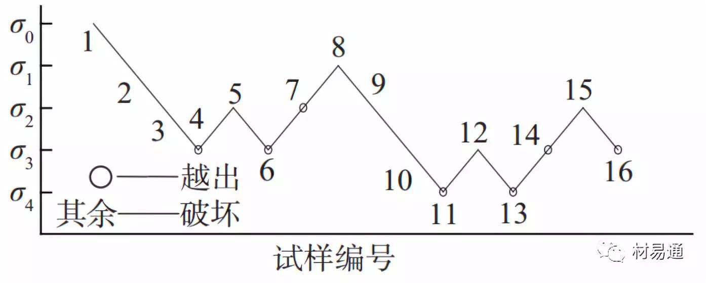 升降法疲勞試驗主要用于測定中、長壽命區(qū)材料或結構疲勞強度的隨機特性。在常規(guī)疲勞試驗方法測定疲勞強度的基礎上或在指定壽命的材料或結構的疲勞強度無法通過試驗直接測定的情況下,一般采用升降法疲勞試驗間接測定疲勞強度。
