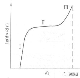 II區(qū):da/dt與K1無關,通常說的裂紋擴展速率就是指該區(qū)速率,因為它主要由電化學過程控制,較強烈地依賴于溶液的pH值,粘度和溫度;
