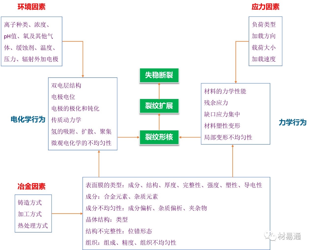 應力腐蝕影響因素——環(huán)境、電化學、力學、冶金。