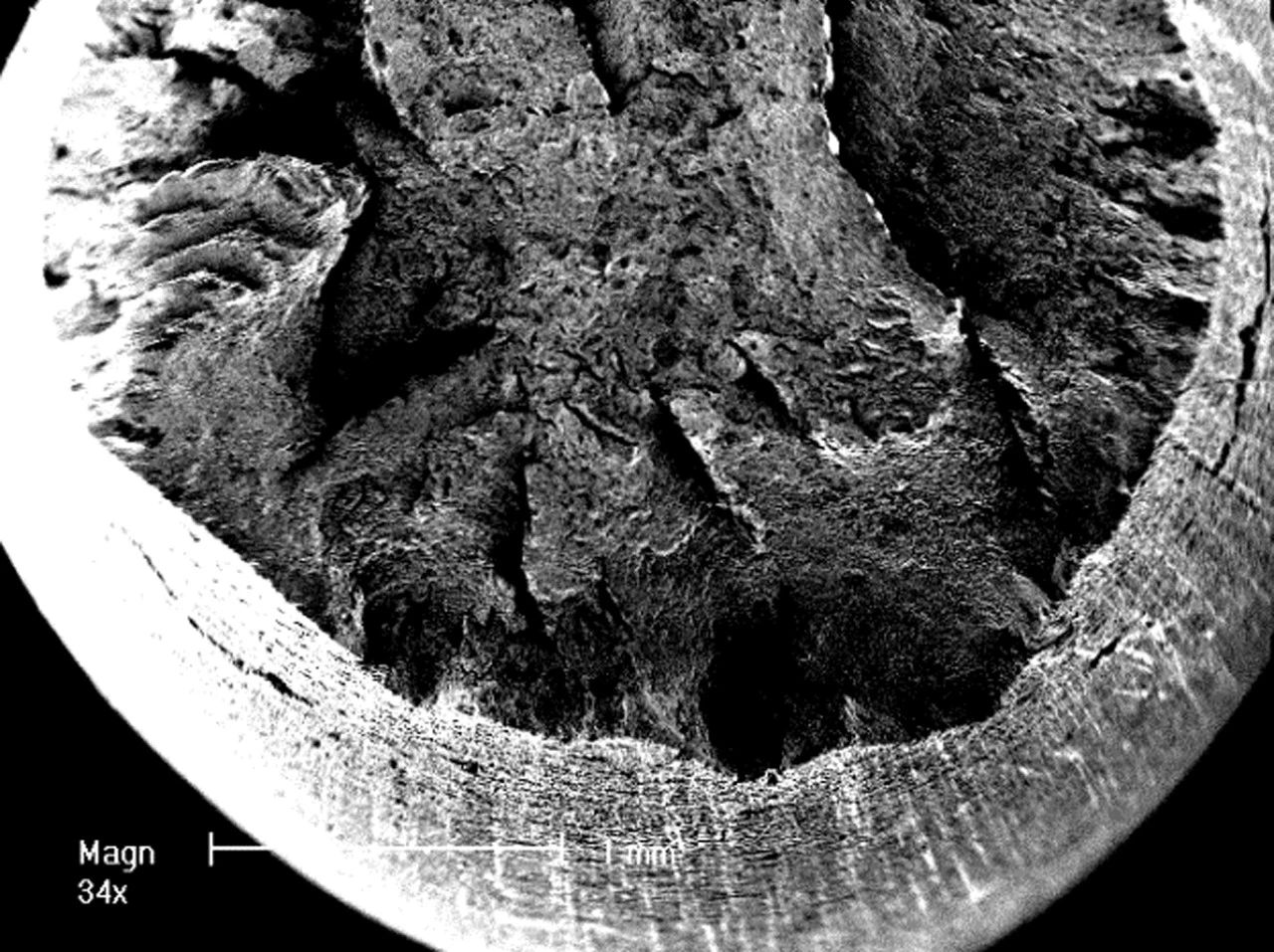 含碳量高的棒材發(fā)生過(guò)很多次斷裂,如45#鋼做的軸,使用不太長(zhǎng)的時(shí)間就發(fā)生斷裂。從斷裂后部件上取樣,進(jìn)行金相分析,往往找不到產(chǎn)生的原因,即算牽強(qiáng)附會(huì)找到了一些原因,也不是實(shí)際的原因。