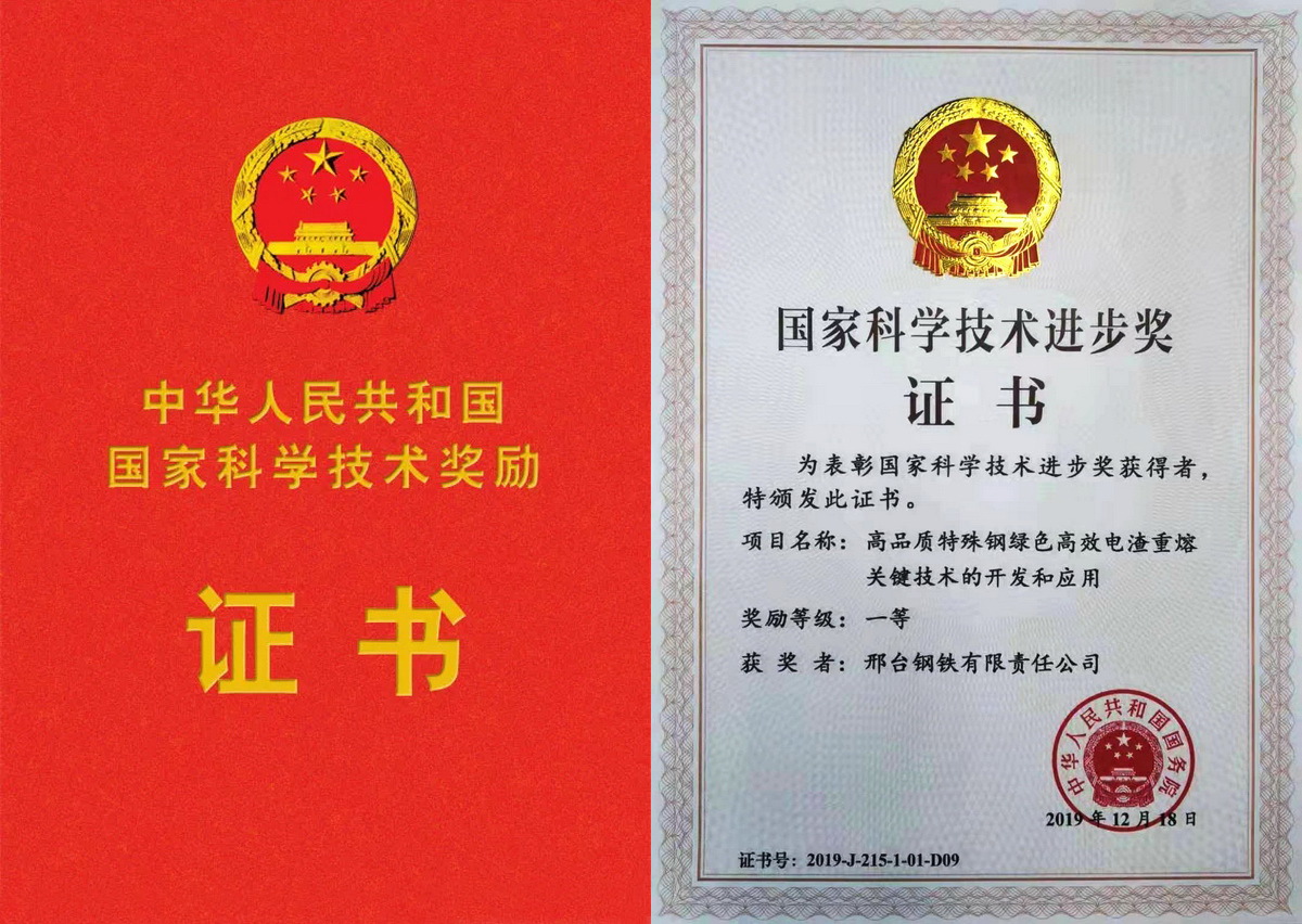 In order to meet the personalized and differentiated needs of high-end users and realize the transformation from low-end products to high technology, high value added and highly processed products, Xingtai Steel intensified the cooperation with well-known scientific research institutes and universities, making full use of the resource superiority such as professionals and sophisticated equipment to carry out research on cutting-edge technology of basic materials. Until now, Xingtai Steel has won 67 provincial ormunicipal science and technology progress awards. The project of “Development and application of the key technology of green and efficient electroslag remelting of high-quality special steel” which is jointly participated by Xingtai Steel won the first prize of National Science & Technology Progress Award.More than 30 products and technological achievements have reached the international advanced level.