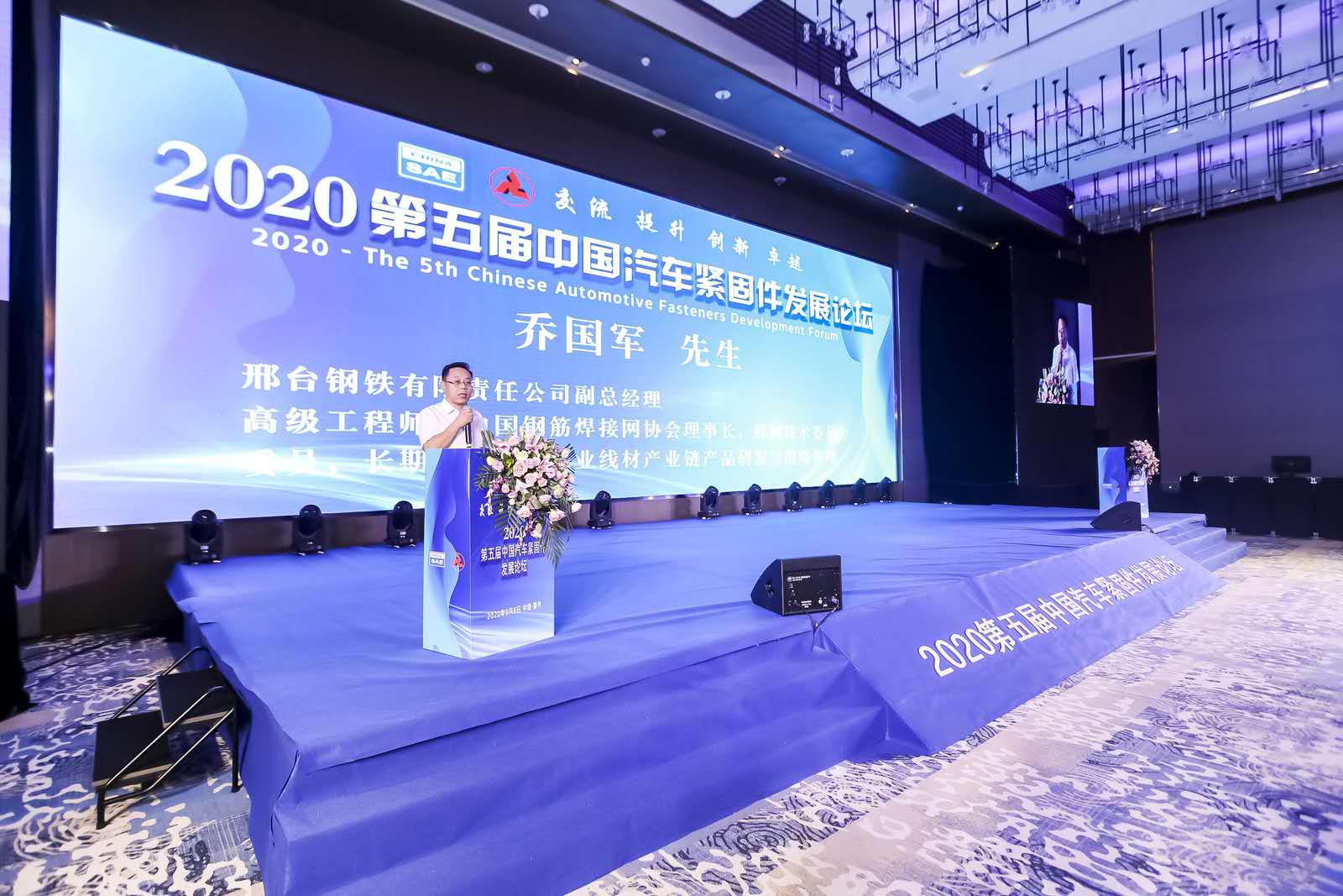 2020年9月8日,由中國汽車工程學(xué)會(huì)、中國汽車工程學(xué)會(huì)汽車防腐蝕老化分會(huì)主辦的2020第五屆中國汽車緊固件發(fā)展論壇在嘉興召開。汽車主機(jī)廠、零部件整機(jī)廠、緊固件企業(yè)、檢測(cè)機(jī)構(gòu)、科研院所、大專院校等180多家緊固件相關(guān)單位的科研人員、技術(shù)人員及管理人員400多人出席大會(huì)。本次大會(huì)由邢臺(tái)鋼鐵有限責(zé)任公司承辦,公司副總經(jīng)理喬國軍、總經(jīng)理助理兼銷售公司總經(jīng)理劉振民等參加了大會(huì)。