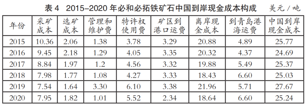 國(guó)際四大礦鐵礦石主要成本分析