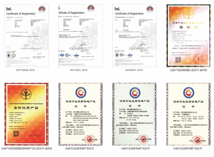 1999年邢鋼開始推行質(zhì)量管理體系,成為最早一批通GB/T19000族標(biāo)準(zhǔn)過(guò)認(rèn)證的鋼企之一。2006年,作為全國(guó)首批鋼鐵企業(yè),邢鋼全流程通過(guò)了英標(biāo)認(rèn)證公司TS16949汽車行業(yè)質(zhì)量管理體系。產(chǎn)品研發(fā)也是芝麻開花節(jié)節(jié)高,通過(guò)創(chuàng)新研發(fā)模式相繼開發(fā)了汽車用鋼、鐵路用鋼,高強(qiáng)橋梁用鋼,耐候鋼、重熔鋼等產(chǎn)品,涵蓋冷鐓鋼、彈簧鋼、軸承鋼、純鐵、預(yù)應(yīng)力鋼、易切削鋼、工模具鋼、耐候鋼等十八大系列。如今的邢鋼已經(jīng)通過(guò)EMS,OHSMS等9個(gè)體系認(rèn)證!