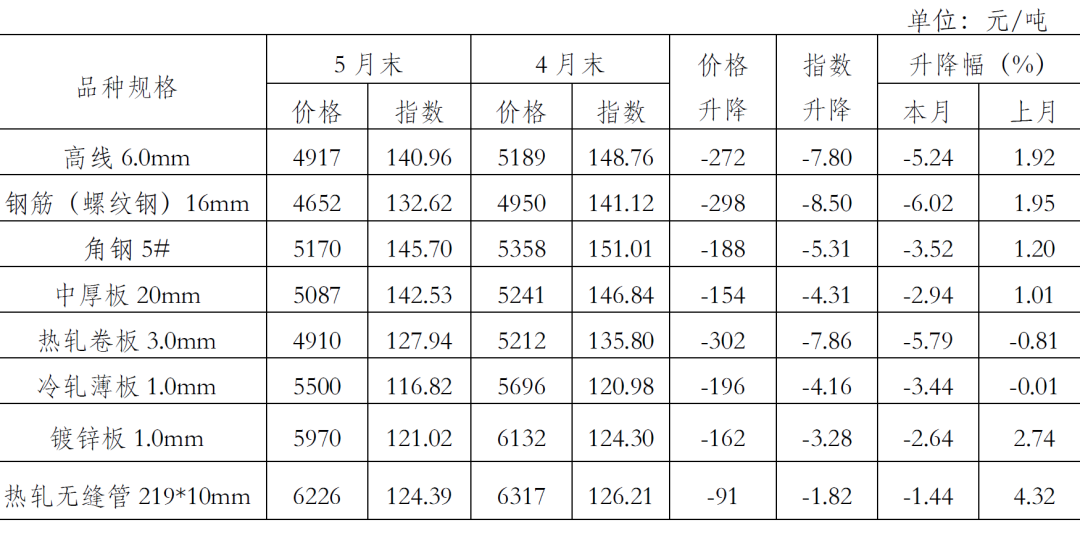 主要鋼材品種價(jià)格及指數(shù)變化情況表