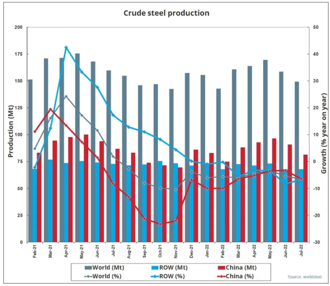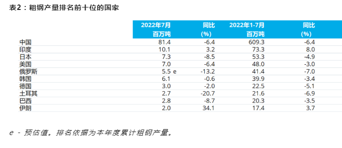 來源:世界鋼鐵協(xié)會 發(fā)布時(shí)間:2022年08月24日 點(diǎn)擊數(shù):