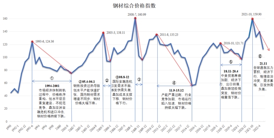 圖1 1990年以來(lái)我國(guó)鋼材價(jià)格綜合指數(shù)變化趨勢(shì)