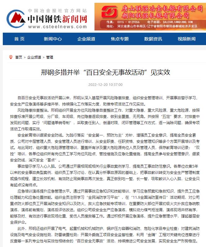 自百日安全無事故活動開展以來,邢鋼從深入基層開展風險隱患排查、組織安全管理培訓(xùn)、開展事故警示學(xué)習(xí)、安全生產(chǎn)應(yīng)急演練等多措并舉,持續(xù)強化工作落實力度,助推專項活動工作見實效。