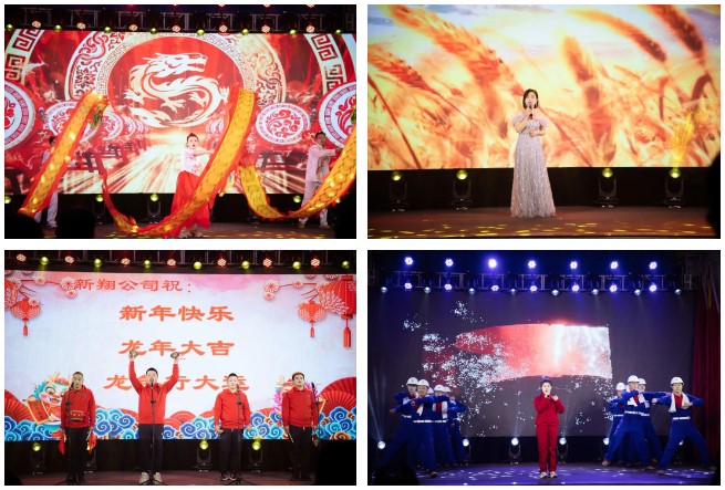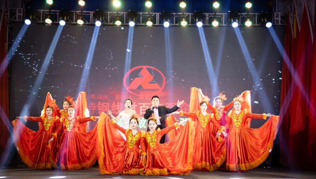 演出開(kāi)始前,由各二級(jí)單位錄制的《鋼鐵工人大拜年》視頻為聯(lián)歡會(huì)開(kāi)幕烘托出濃厚的節(jié)日喜慶氣氛。煉鐵廠王艷等的開(kāi)場(chǎng)舞《中國(guó)龍,舞起來(lái)》歡樂(lè)、動(dòng)感;儲(chǔ)運(yùn)中心侯伊坤的獨(dú)唱《風(fēng)吹麥浪》唯美、清新;新翔公司楊立興等的三句半表演《賀龍年》則輕松、詼諧;煉鐵廠劉士沛與新入職年輕人“以老帶新”的歌伴舞《時(shí)代號(hào)子——致敬邢鋼人》點(diǎn)燃起晚會(huì)現(xiàn)場(chǎng)觀眾的火熱激情。質(zhì)量控制部孫濤的薩克斯獨(dú)奏《she》、焦化廠申學(xué)軍的《戲曲串燒》、線材廠魏東的獨(dú)唱《兄弟干杯》、財(cái)務(wù)部楊佳薏的獨(dú)舞《星河嘆》、銷售公司田芳等的小合唱《不放棄》、煉鋼廠甄建軍、張康健的二重唱《可能》、動(dòng)力廠董巖、陳險(xiǎn)峰等的歌舞《最親的人》等節(jié)目繽紛呈現(xiàn),展示了邢鋼人多才多藝的別樣風(fēng)貌;煉鐵廠楊曉霞等的情景劇《歲月》以兩代人的視角,抒發(fā)了企業(yè)歷史變遷中不變的邢鋼人情懷;賈凌雪、陳燕、魏秋紅、李濟(jì)興聯(lián)袂表演的詩(shī)朗誦《沉香·甲子邢鋼》,回顧邢鋼65年跋涉歷程,寄語(yǔ)新邢鋼美好未來(lái);公司總經(jīng)理彭世丹等中高層領(lǐng)導(dǎo)的合唱《眾人劃槳開(kāi)大船》把整場(chǎng)聯(lián)歡會(huì)推向高潮,臺(tái)上歌聲鏗鏘,臺(tái)下掌聲相和,激發(fā)起邢鋼人“眾志成城創(chuàng)大業(yè),凝心聚力贏未來(lái)”的壯志豪情。聯(lián)歡會(huì)在《陽(yáng)光路上》的歌聲中落下帷幕,預(yù)示著新邢鋼的未來(lái)發(fā)展一路陽(yáng)光、前程錦繡!