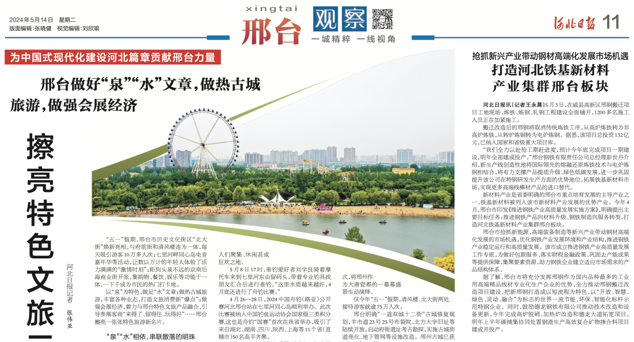 “我們?nèi)σ愿皳尮て谮s進度,預計今年底完成項目一期建 設,明年全部建成投產(chǎn)。”邢臺鋼鐵有限責任公司總經(jīng)理彭世丹介 紹,新生產(chǎn)線創(chuàng)造性地將國際領(lǐng)先的熔融還原煉鐵技術(shù)與電爐煉 鋼相結(jié)合,將有力支撐產(chǎn)品提質(zhì)升級、綠色低碳發(fā)展,進一步鞏固 提升該公司在特鋼研發(fā)生產(chǎn)方面的優(yōu)勢地位,拓展鐵基新材料市 場,實現(xiàn)更多高端線棒材產(chǎn)品的進口替代。