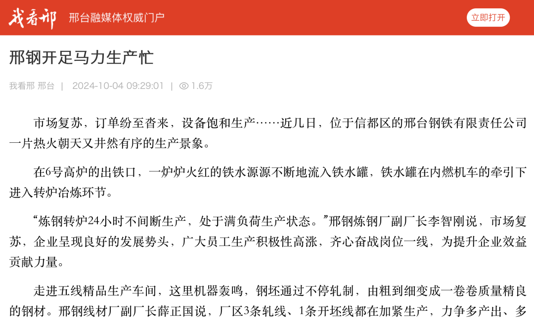 在 6 號高爐的出鐵口,一爐爐火紅的鐵水源源不斷地流入鐵水罐,鐵水罐在內(nèi)燃機車的牽引下進入轉(zhuǎn)爐冶煉環(huán)節(jié)。“煉鋼轉(zhuǎn)爐 24 小時不間斷生產(chǎn), 處于滿負荷生產(chǎn)狀態(tài)。”邢鋼煉鋼廠副 廠長李智剛說,市場復蘇,企業(yè)呈現(xiàn)良好的發(fā)展勢頭,廣大員工生產(chǎn)積極性高漲,齊心奮戰(zhàn)崗位一線,為提升企業(yè)效益貢獻力量。走進五線精品生產(chǎn)車間,這里機器轟鳴,鋼坯通過不停軋制,由粗到細變成一卷卷質(zhì)量精良的鋼材。邢鋼線材廠副廠長薛正國說,廠區(qū) 3 條軋線、 1 條開坯線都在加緊生產(chǎn),力爭多產(chǎn) 出、多收益。近年來,邢鋼致力于轉(zhuǎn)型升級促進高質(zhì)量發(fā)展,專注于工業(yè)新材料的研發(fā)制造,公司優(yōu)特鋼比例達 100%,高新產(chǎn)品達 70%以上,擁有冷鐓鋼、純鐵、彈簧鋼等 18 大類 600 多個鋼種 3500 多種產(chǎn)品,廣泛應用于汽車、大跨 度橋梁、鐵路等國家優(yōu)先發(fā)展的領域。高品質(zhì)特鋼產(chǎn)品讓邢鋼不斷贏得市場認可。前不久,在上海國際緊固件 工業(yè)博覽會和 2024 印尼雅加達東南亞緊固件專業(yè)展上,邢鋼與巴西、越南等多個國家的企業(yè)達成合作意向;邢鋼的“新能源汽車用高強度超高潔凈度冷鐓鋼技術(shù)創(chuàng)新及應用”項目經(jīng)河北省質(zhì)量 文化協(xié)會選拔、中國質(zhì)量協(xié)會推薦,成功入圍 2024 年度國際質(zhì)量創(chuàng)新大賽。“邢鋼專注高端鋼材生產(chǎn),市場競爭力強,訂單充足,未來一個月的訂單已經(jīng)基本排滿,多種規(guī)格產(chǎn)品訂單量增長。”在五線中控室,薛正國在電腦上翻看排單表,信心十足地說“,在市場大環(huán)境穩(wěn)定的情況下,訂單量有保證。”在采訪中,五線精品生產(chǎn)車間主任張志斌說,火力全開的生產(chǎn)景象令人振奮,他將把自己 20 年的工作經(jīng)驗運用到生產(chǎn)中去,推動鋼材標準化生 產(chǎn),滿足客戶的需求,不斷提升產(chǎn)品質(zhì)量和邢鋼品牌滿意度。