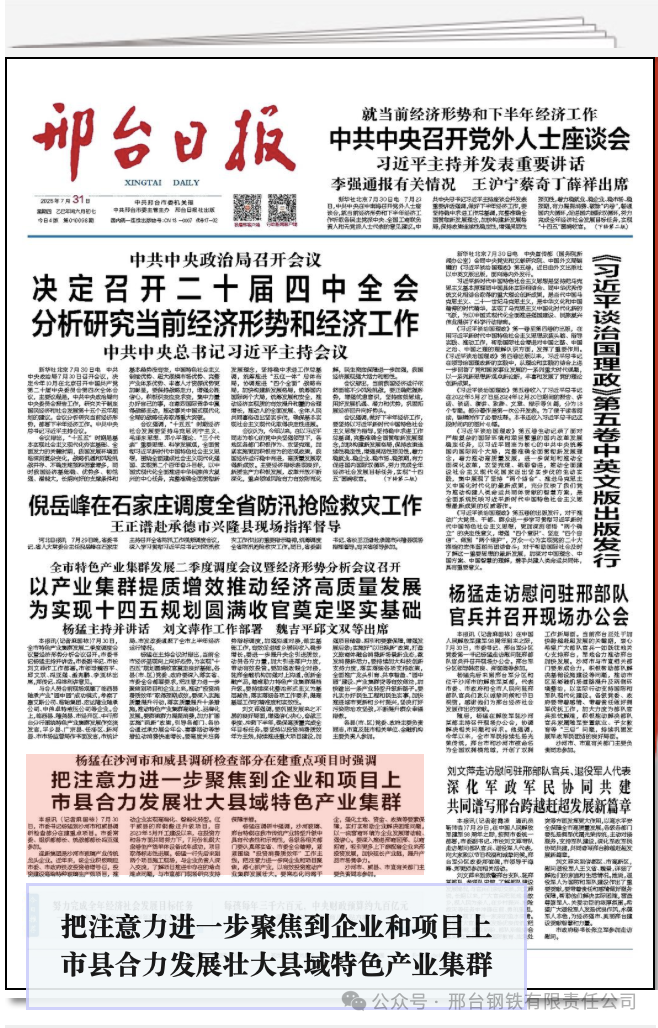 楊猛在調(diào)研中強(qiáng)調(diào),沙河玻璃、邢臺特鋼在我市傳統(tǒng)產(chǎn)業(yè)轉(zhuǎn)型升級中具有代表性和示范性,各級各相關(guān)部門要認(rèn)真落實(shí)省、市委全會精神,緊緊圍繞“投資消費(fèi)質(zhì)效年”工作主線,把注意力進(jìn)一步向企業(yè)和項(xiàng)目聚焦,潛心抓產(chǎn)業(yè),以有效投資推動產(chǎn)業(yè)集群發(fā)展壯大。要常態(tài)化問需于企,強(qiáng)化土地、資金、政策等要素保障,實(shí)打?qū)崕椭髽I(yè)解決困難問題,以一流營商環(huán)境為企業(yè)發(fā)展增動能、強(qiáng)信心。要深入推進(jìn)邢商回邢、以商招商,吸引更多上下游配套企業(yè)來邢投資發(fā)展,加快延長產(chǎn)業(yè)鏈,提升產(chǎn)品市場競爭力。