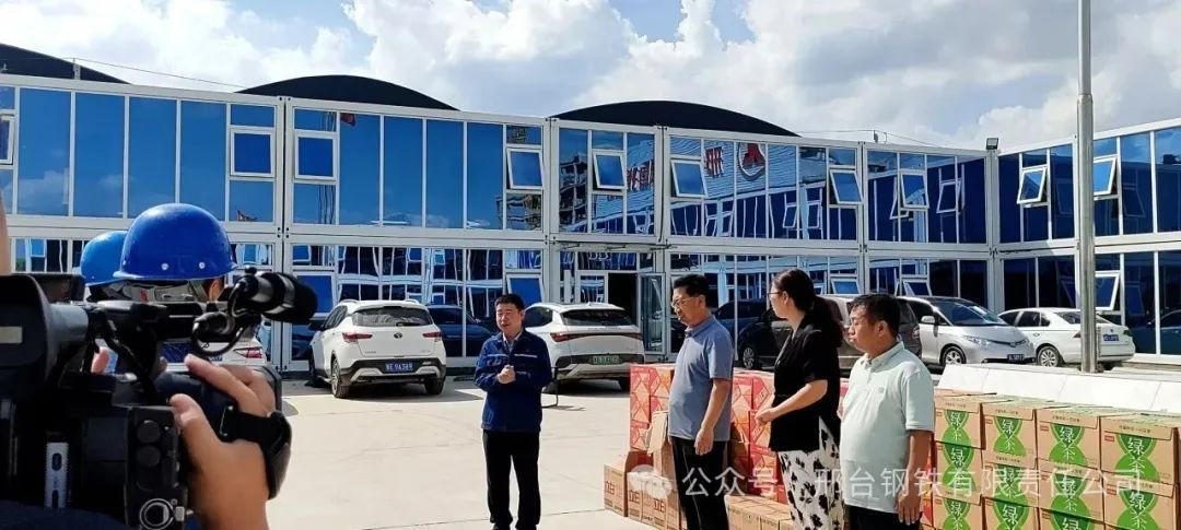 新廠房里,起重機下,工人們正一絲不茍地進行設備安裝、調(diào)試。8月22日,邢臺市總工會黨組成員、經(jīng)審委主任龐蘇、威縣總工會主席岳朝軒等一行來到邢鋼搬遷項目建設工地,為連日來被潮熱天氣“烤驗”的建設者們送來“清涼”大禮包和真摯的慰問。公司副總經(jīng)理馬保良出席了“送清涼”慰問品發(fā)放儀式。
